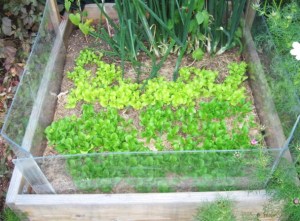 Should we encounter a threat of frost we can simply toss a blanket and tarp over the cold-framed garden beds. We look forward to consuming fresh salad greens well into November this year.
