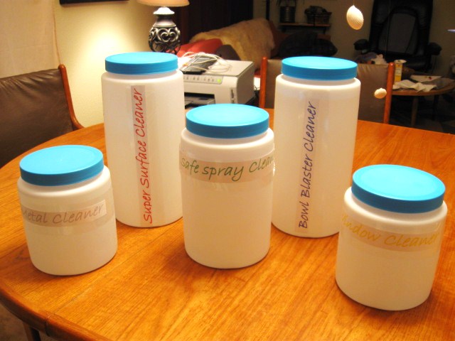 Take another baby step to life’s independence by making your own household cleaning products and save money. Be sure to label your containers with pride and reuse recycled packaging.